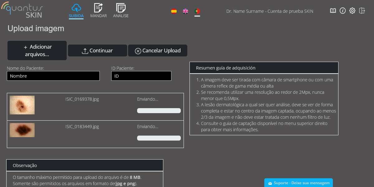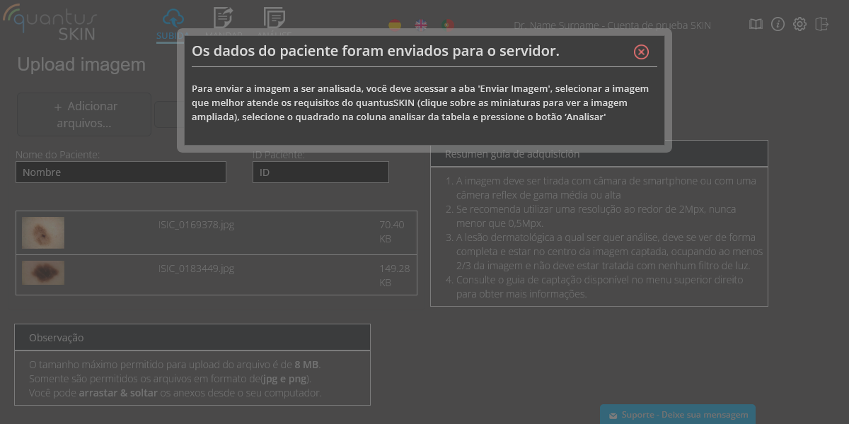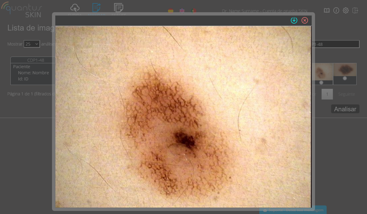 quantusOS é um teste não invasivo, rápido e fácil de usar baseado na análise automática de imagens dermoscópicas que estima a probabilidade de que a imagem represente uma lesão benigna ou maligna.