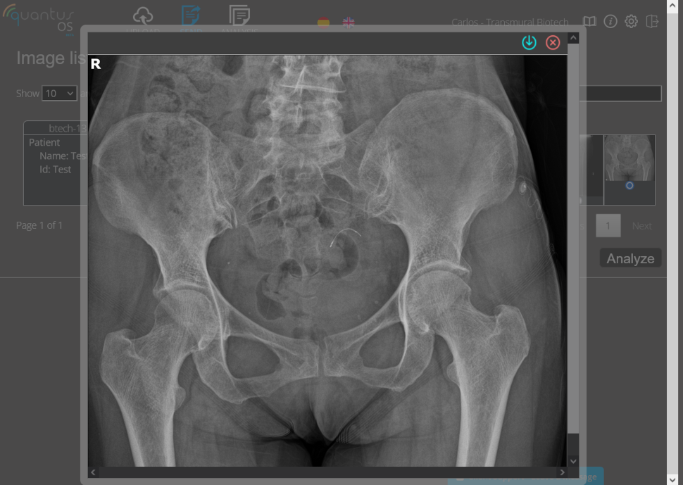 Download the image from the X-ray device to a USB disk or to a drive on the hard disk of the computer with which you access the quantusOS platform.