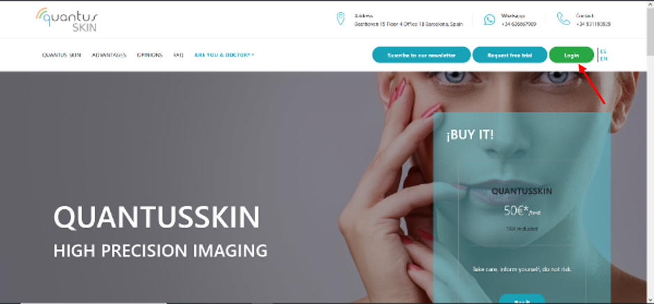 Para iniciar a sua sessão com a sua conta de Doctor, você deve ir a www.quantusOS.org clicar no botão verde "Acesso" e insira suas credenciais para acessar a plataforma.